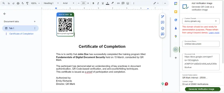 We will also look at how QR Mark makes this easy in daily workflows. Organizations can add a verification QR Code directly from Google Docs or Microsoft Word.